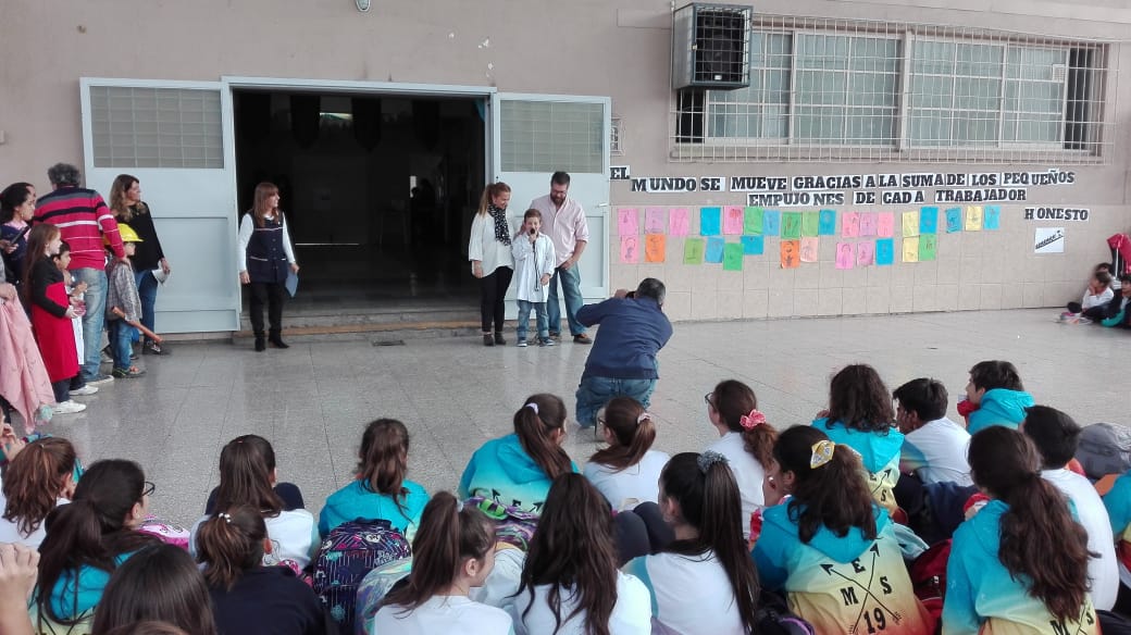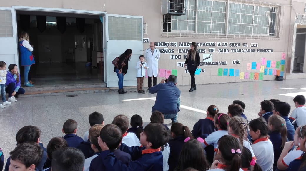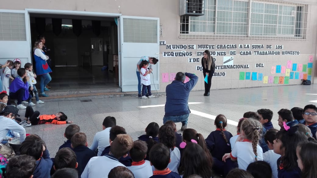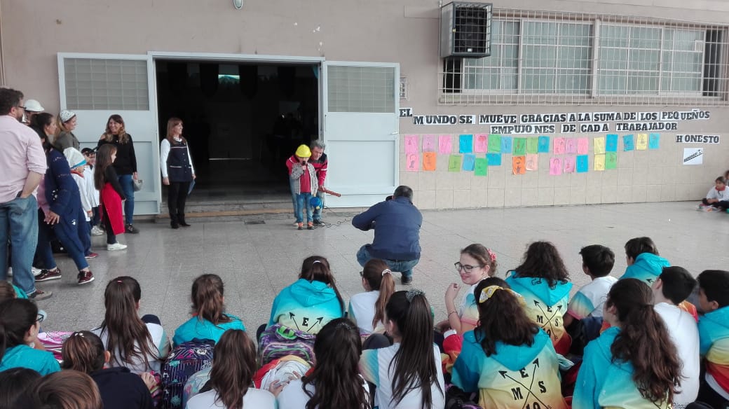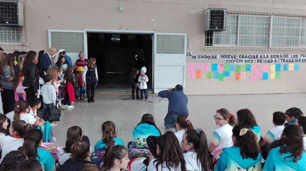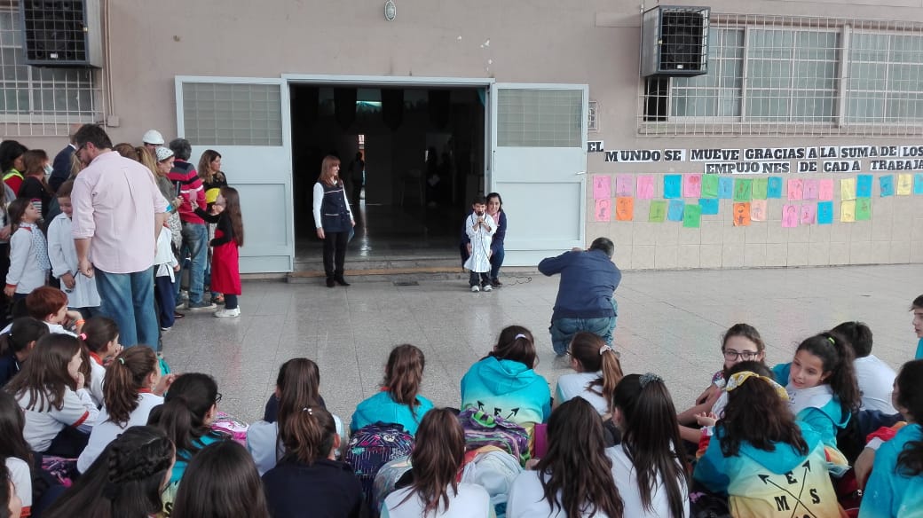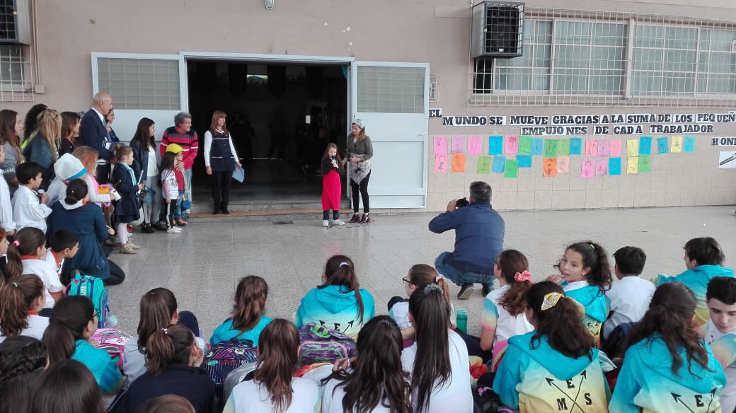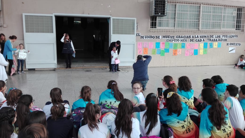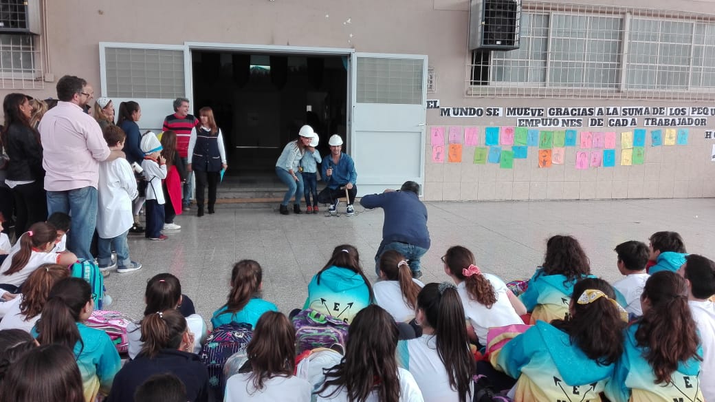 Los alumnos de primer grado, acompañados de sus familias, fueron los encargados de darle vida a este acto en el que los niños y sus padres representaban una profesión y a través de un verso contaban cual es la tarea que realiza.