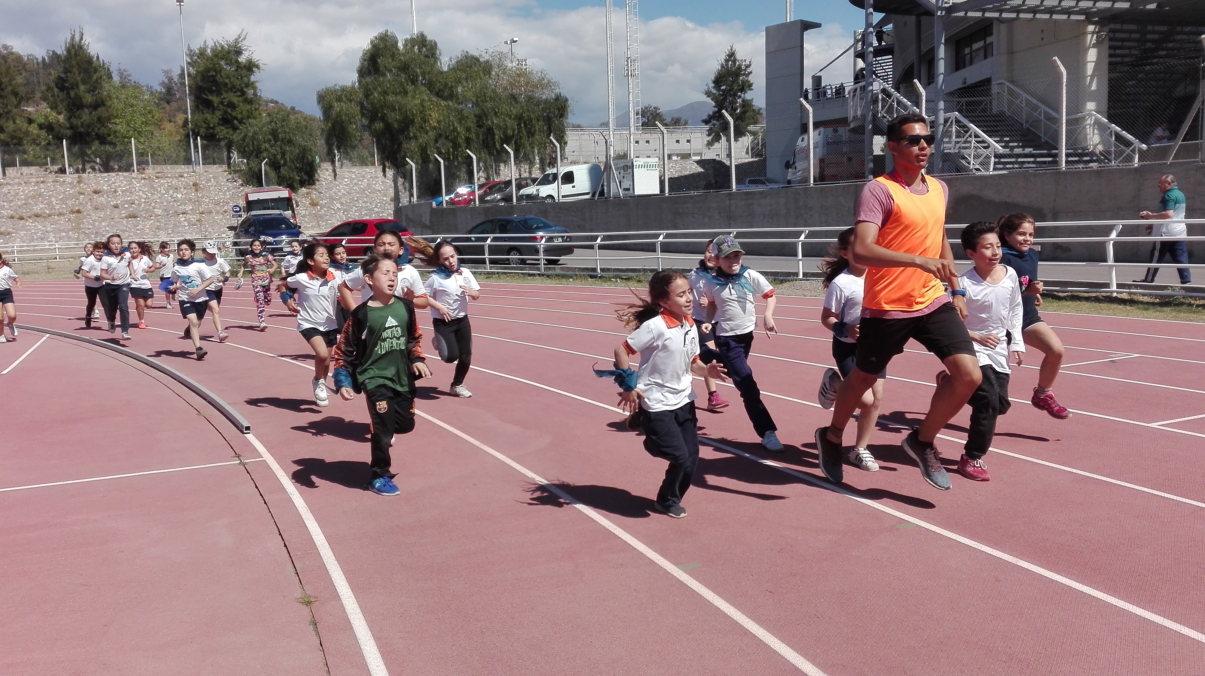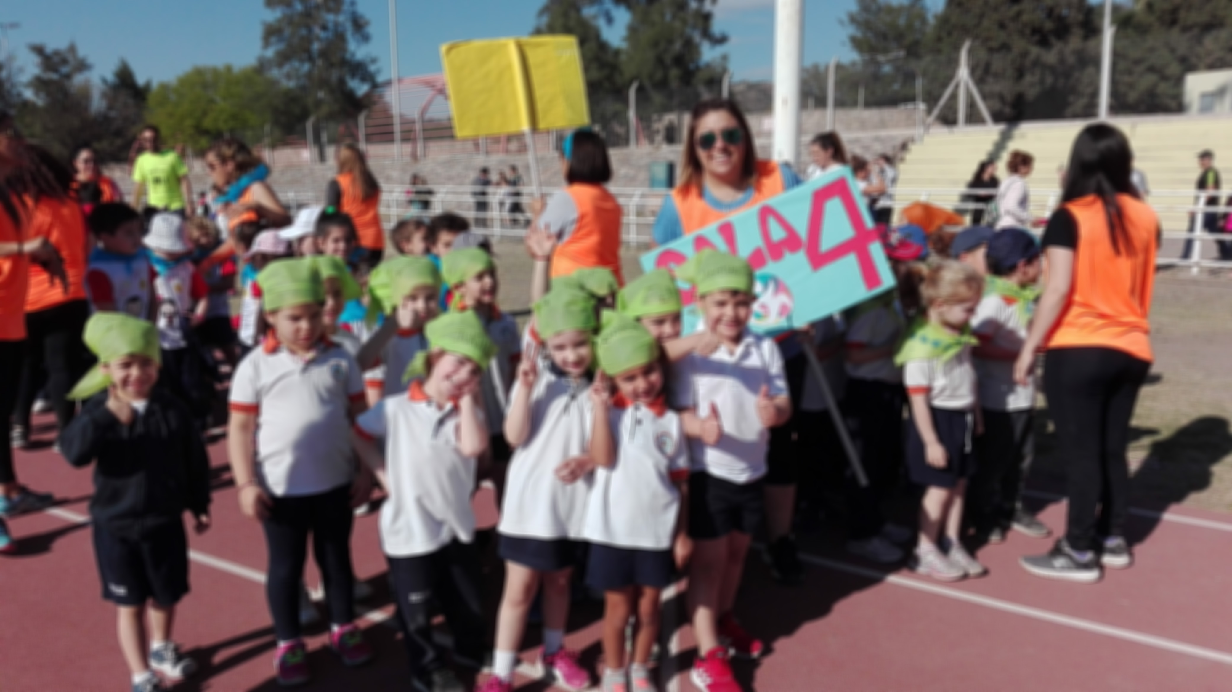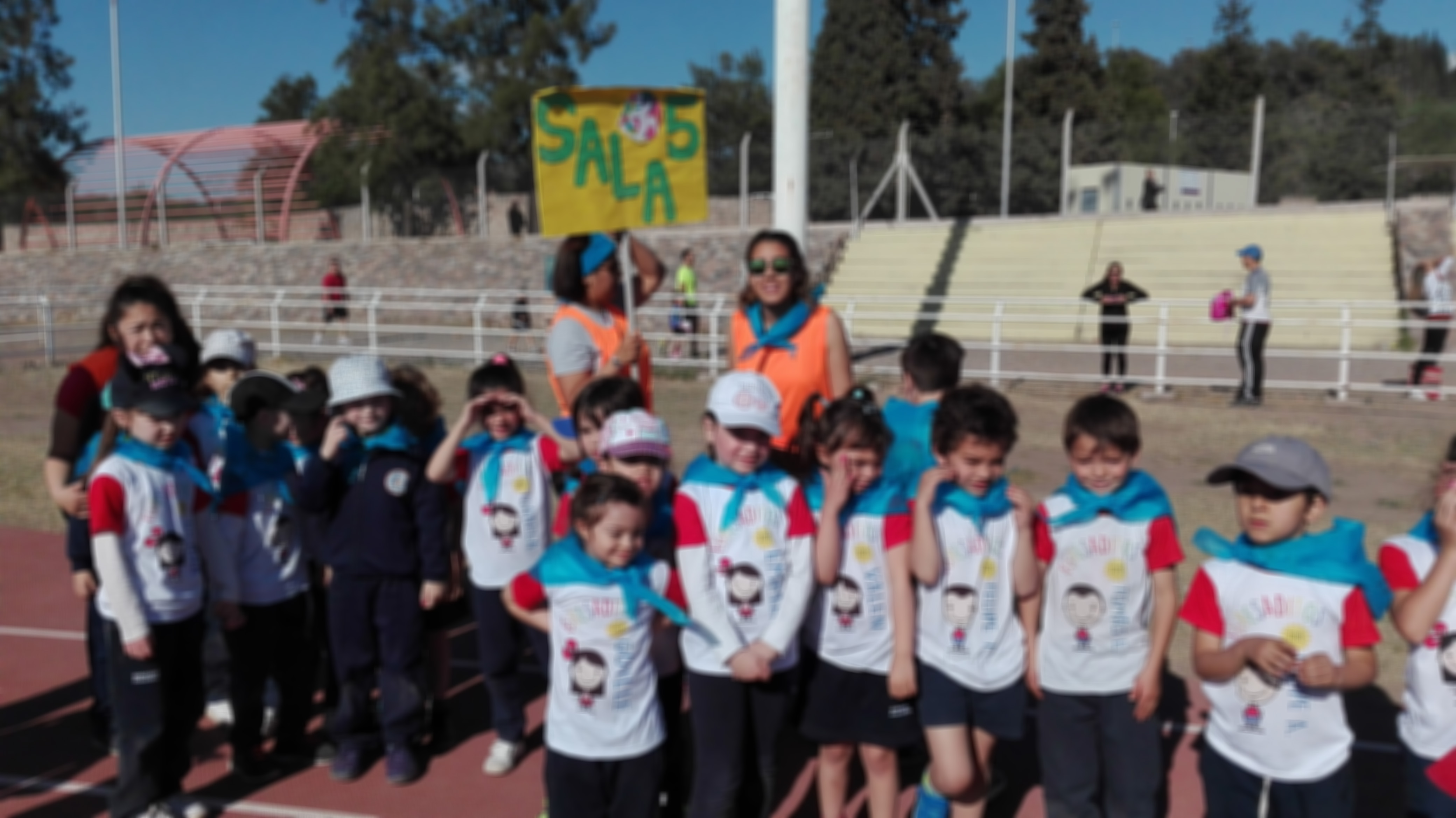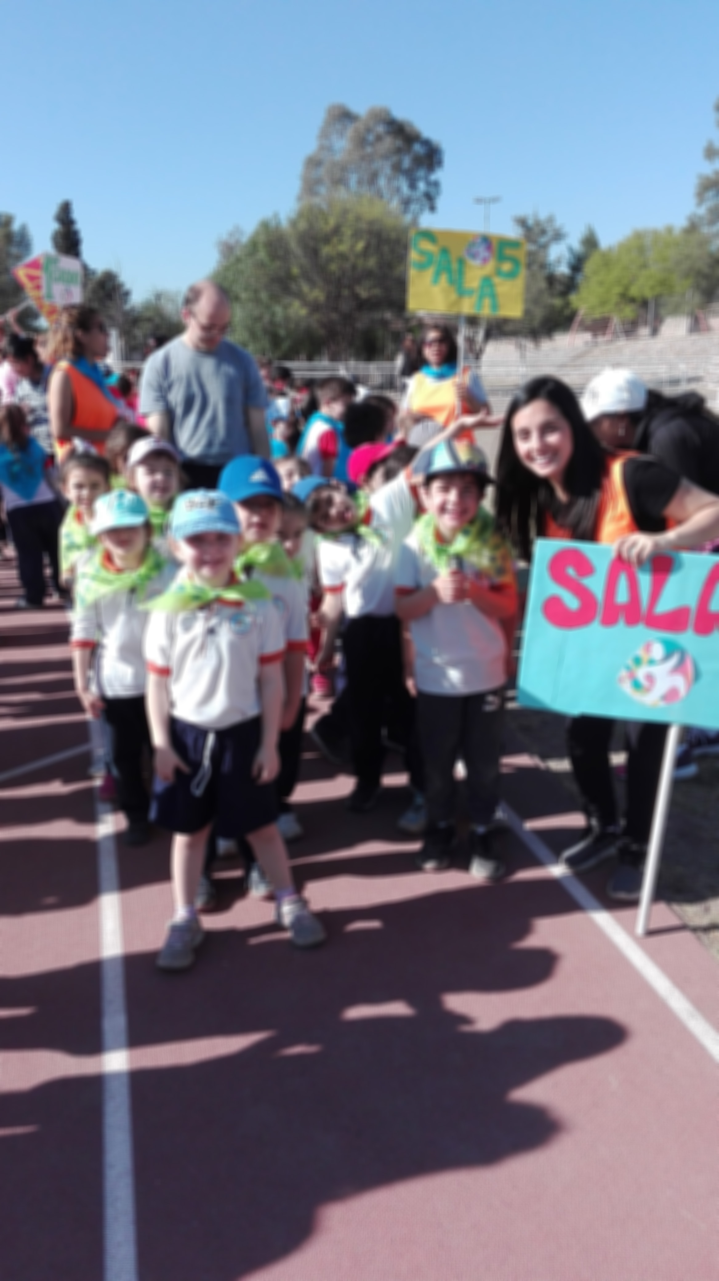 Cerca de las 9 se dió inicio a la actividad con un desfile, en el cual los niños, acompañados por sus docentes, recorren la pista y saludan a los espectadores.