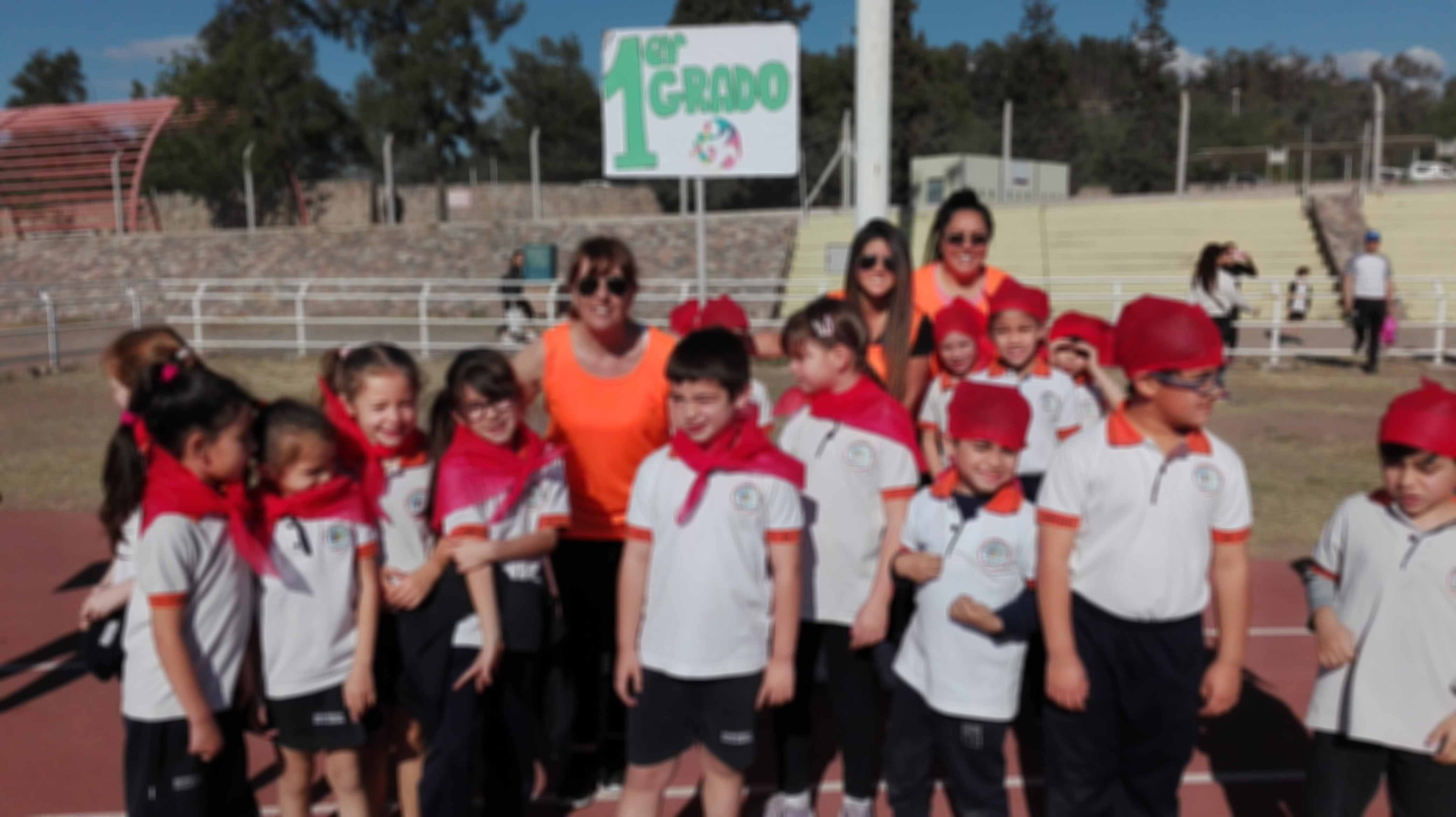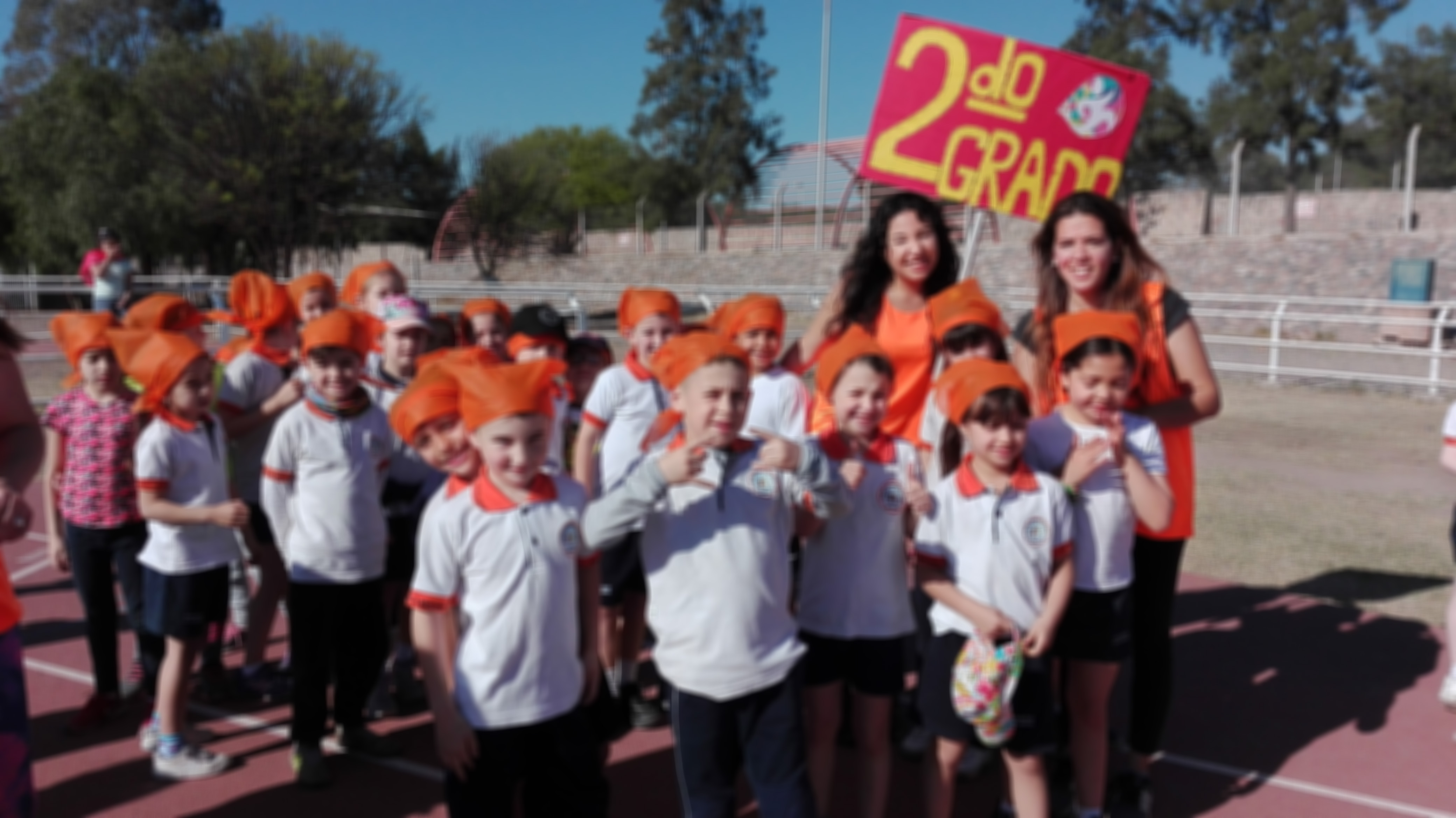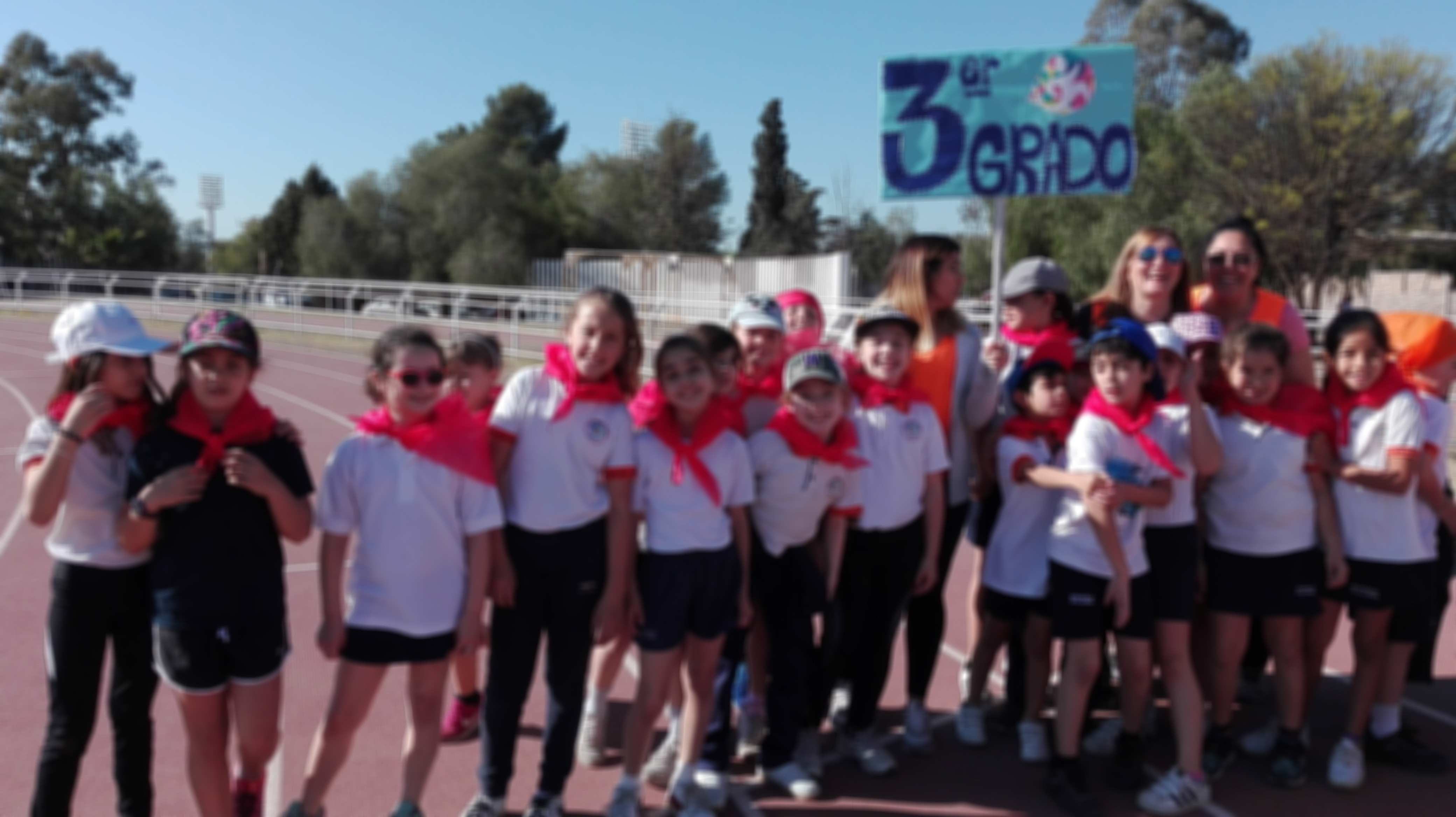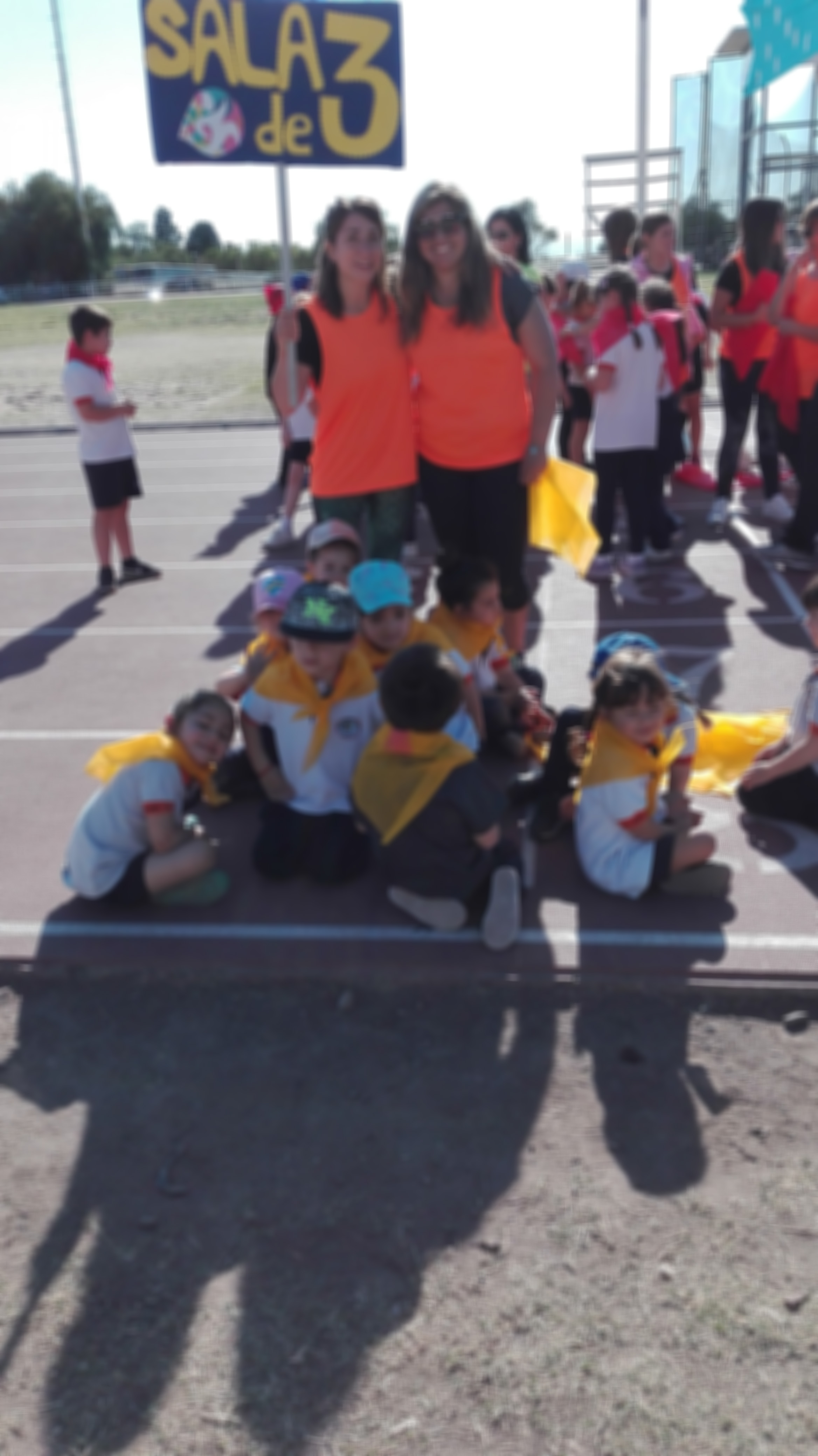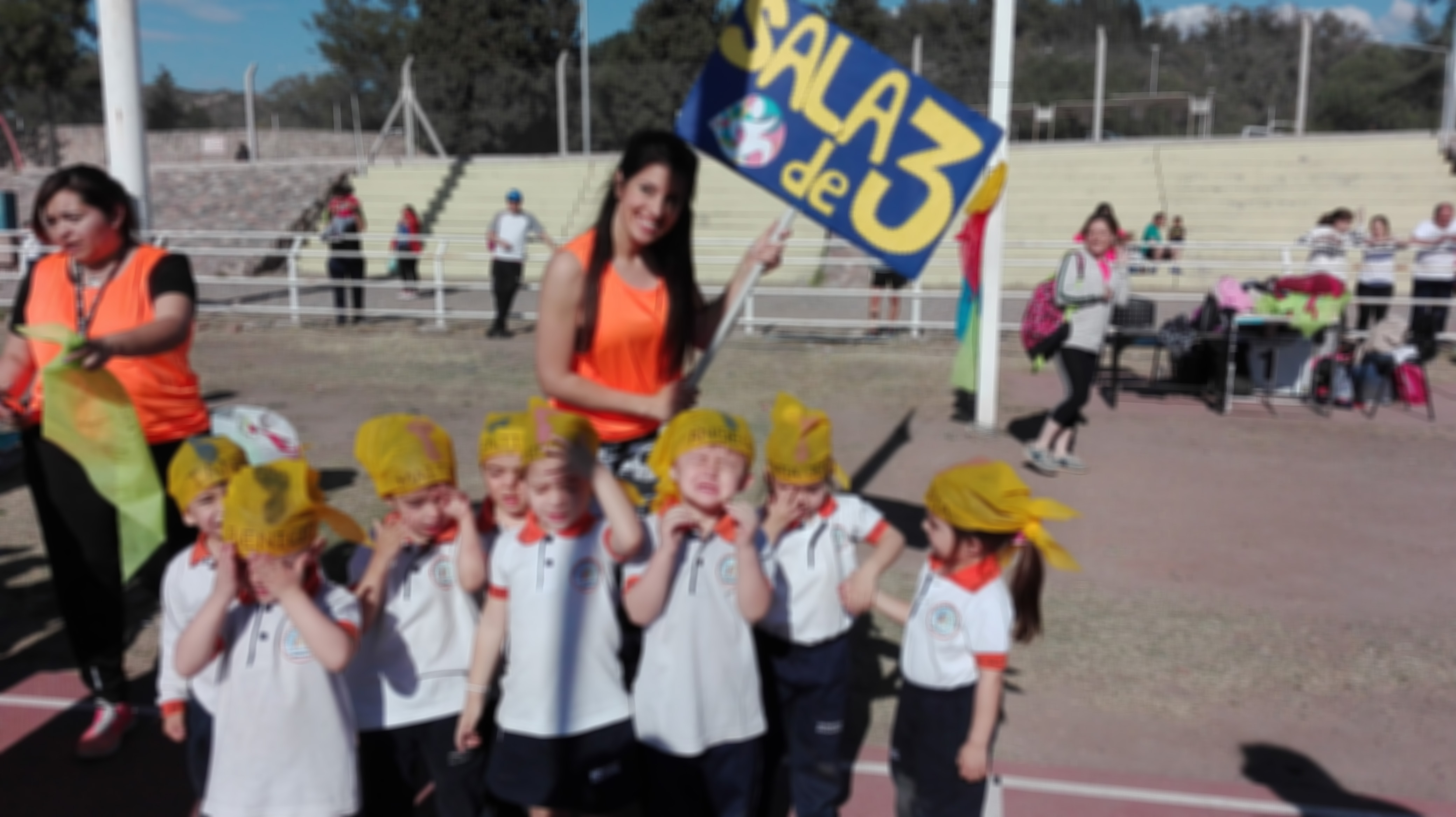 Cerca de las 9 se dió inicio a la actividad con un desfile, en el cual los niños, acompañados por sus docentes, recorren la pista y saludan a los espectadores.