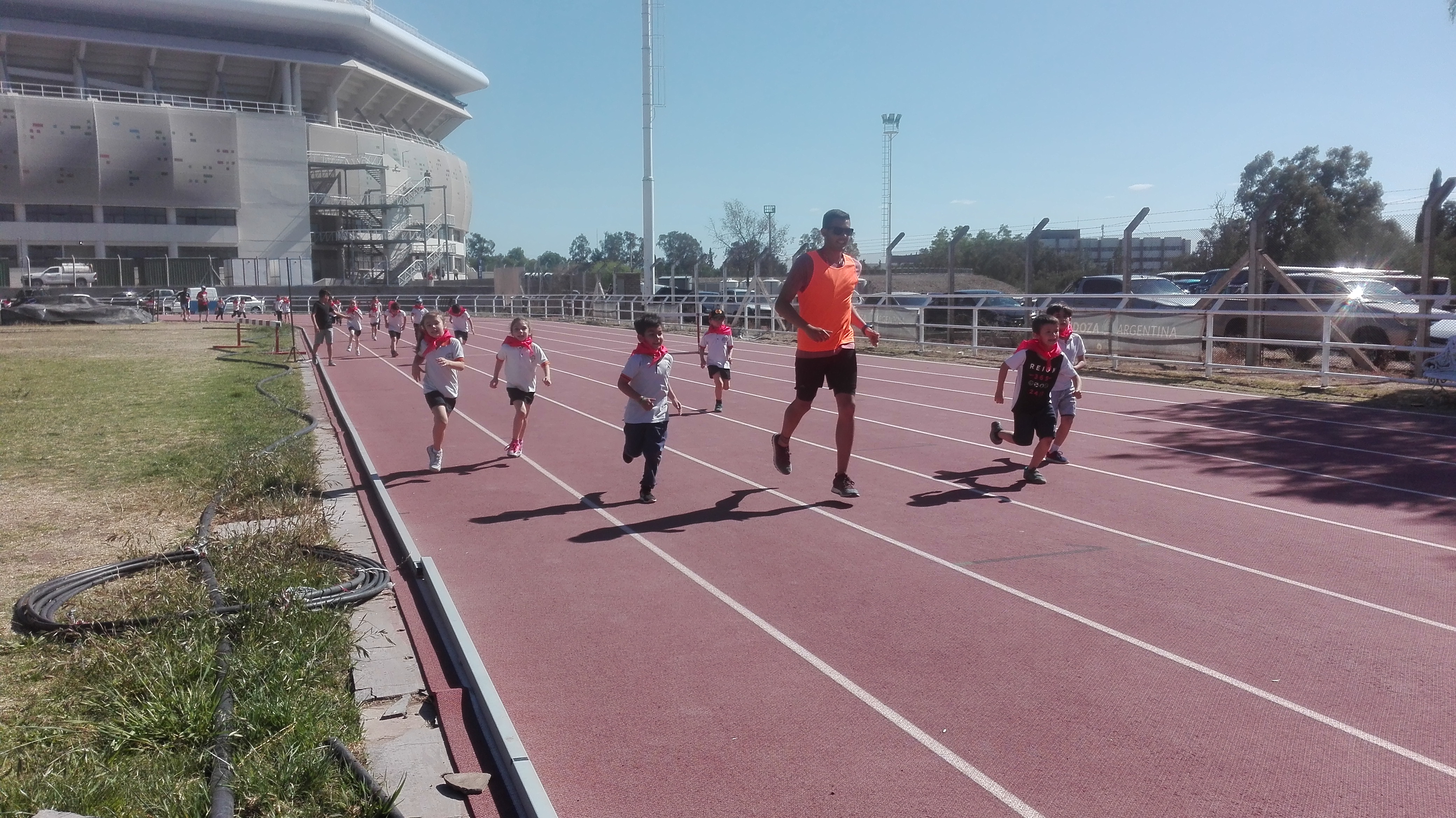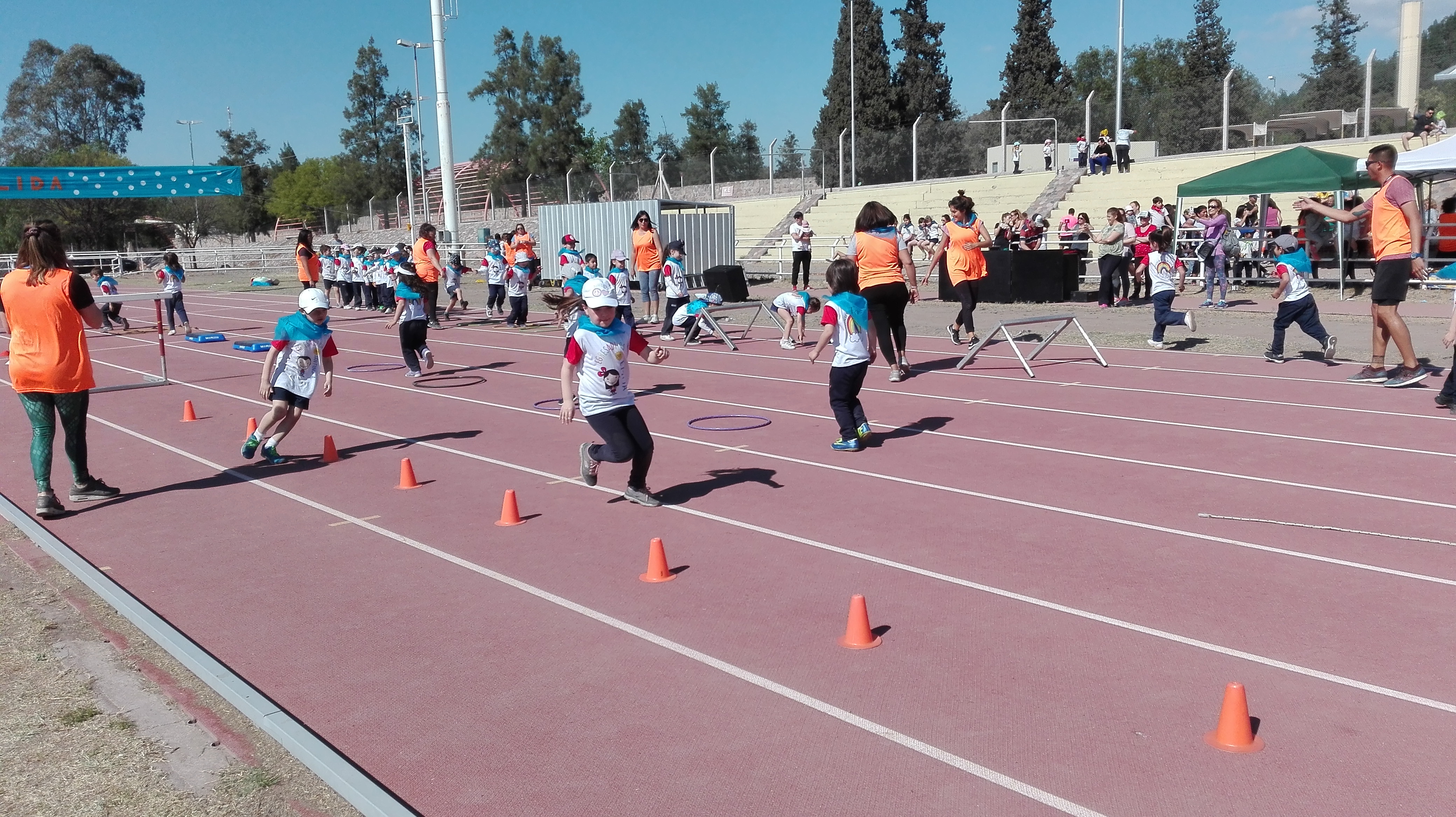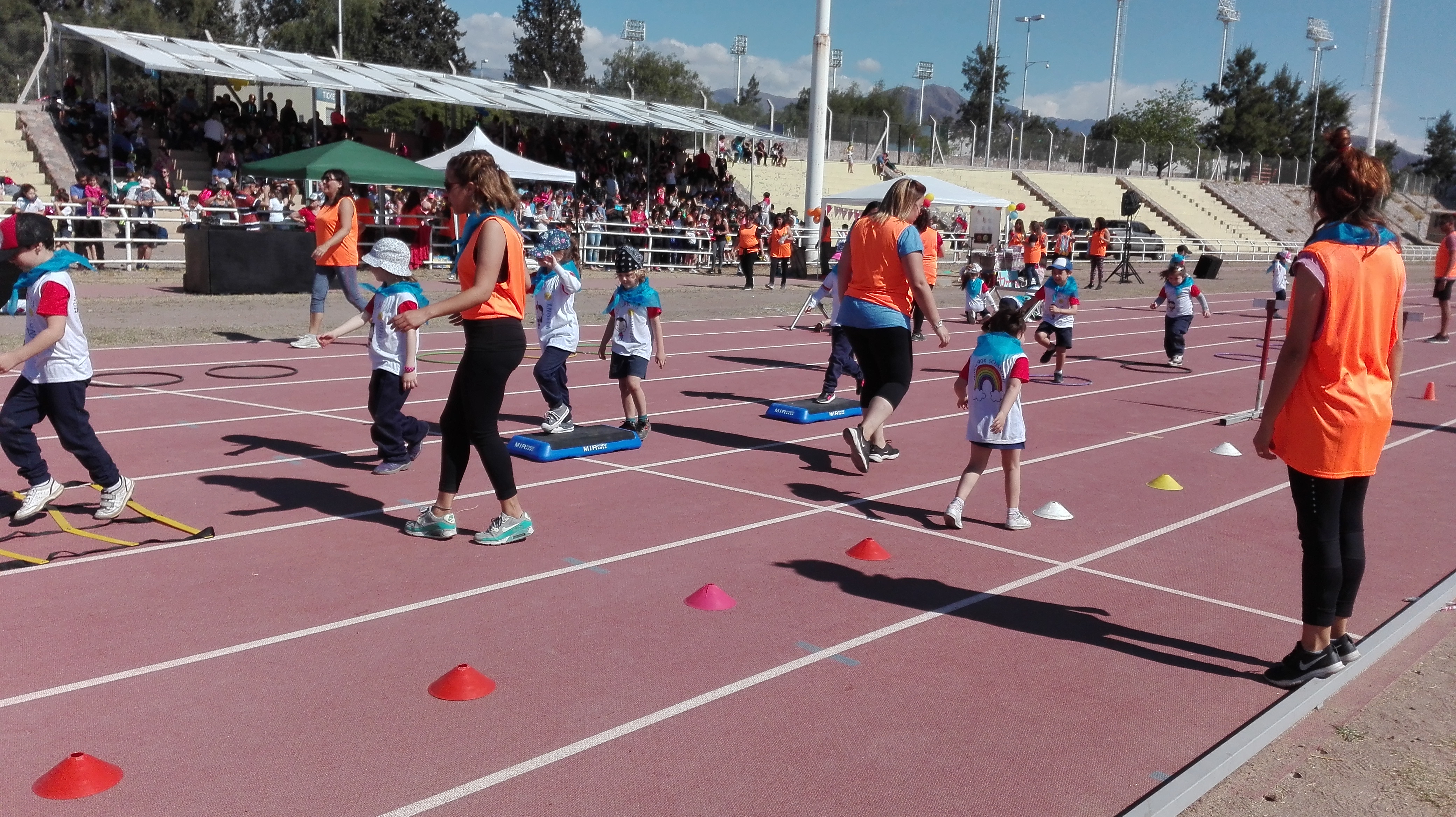 Luego llegó el momento de acción, los niños de Nivel Inicial realizaron un circuito, acompañados por los profesores de Educación Física, mientras que los alumnos de Nivel Primario se encontraban desarrollando diversas disciplinas deportivas (salto en largo, lanzamiento y salto con vallas).