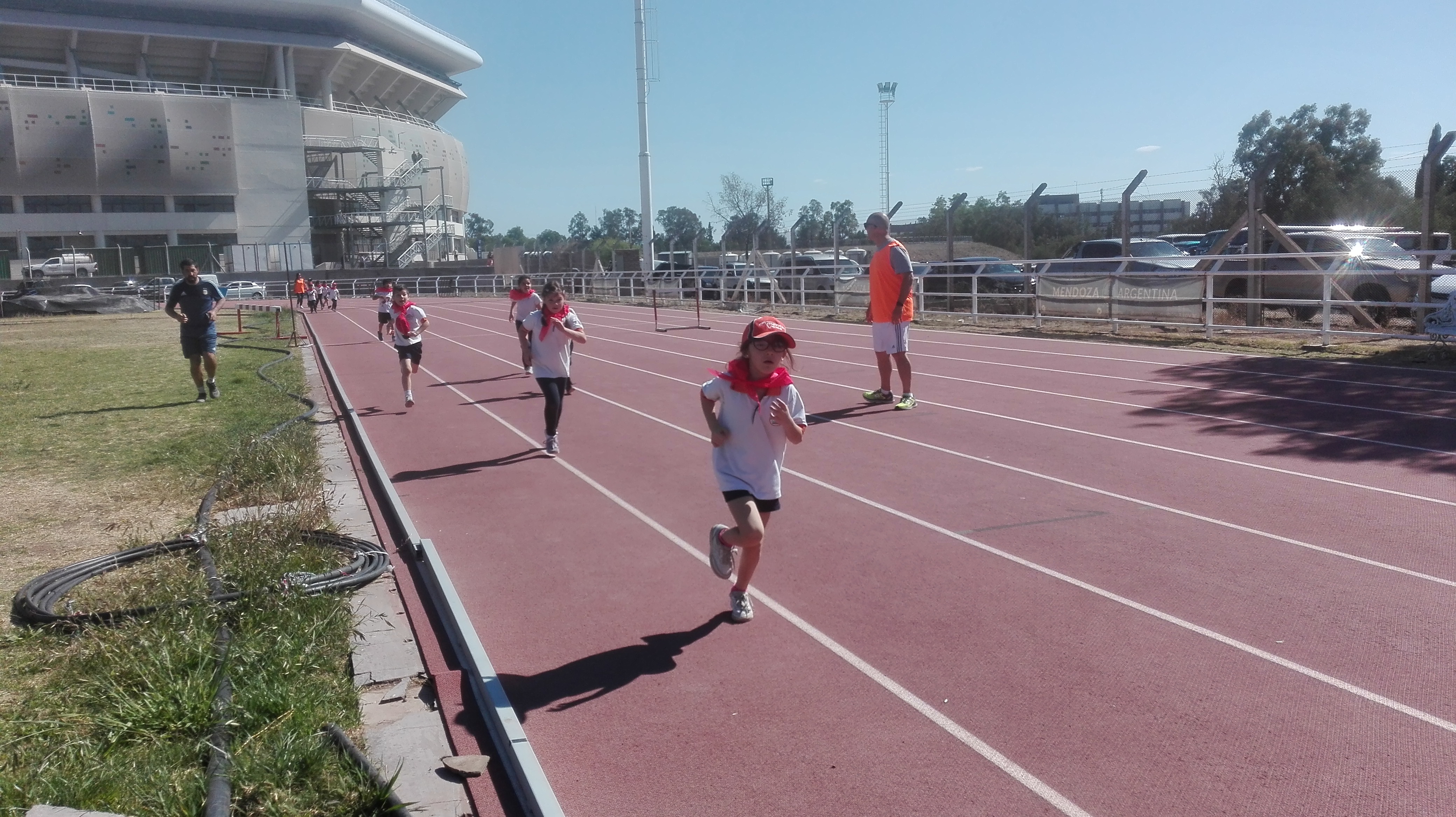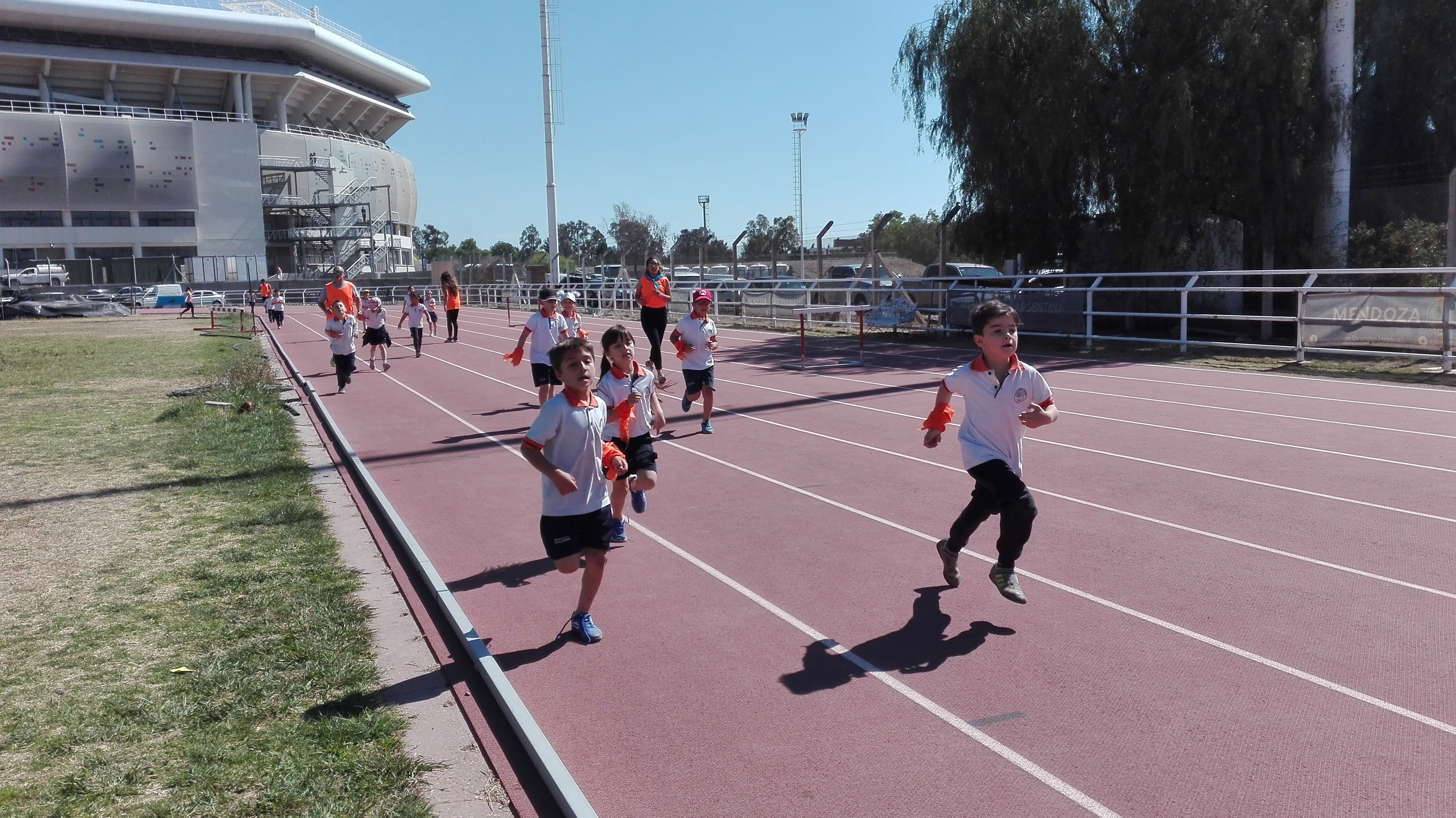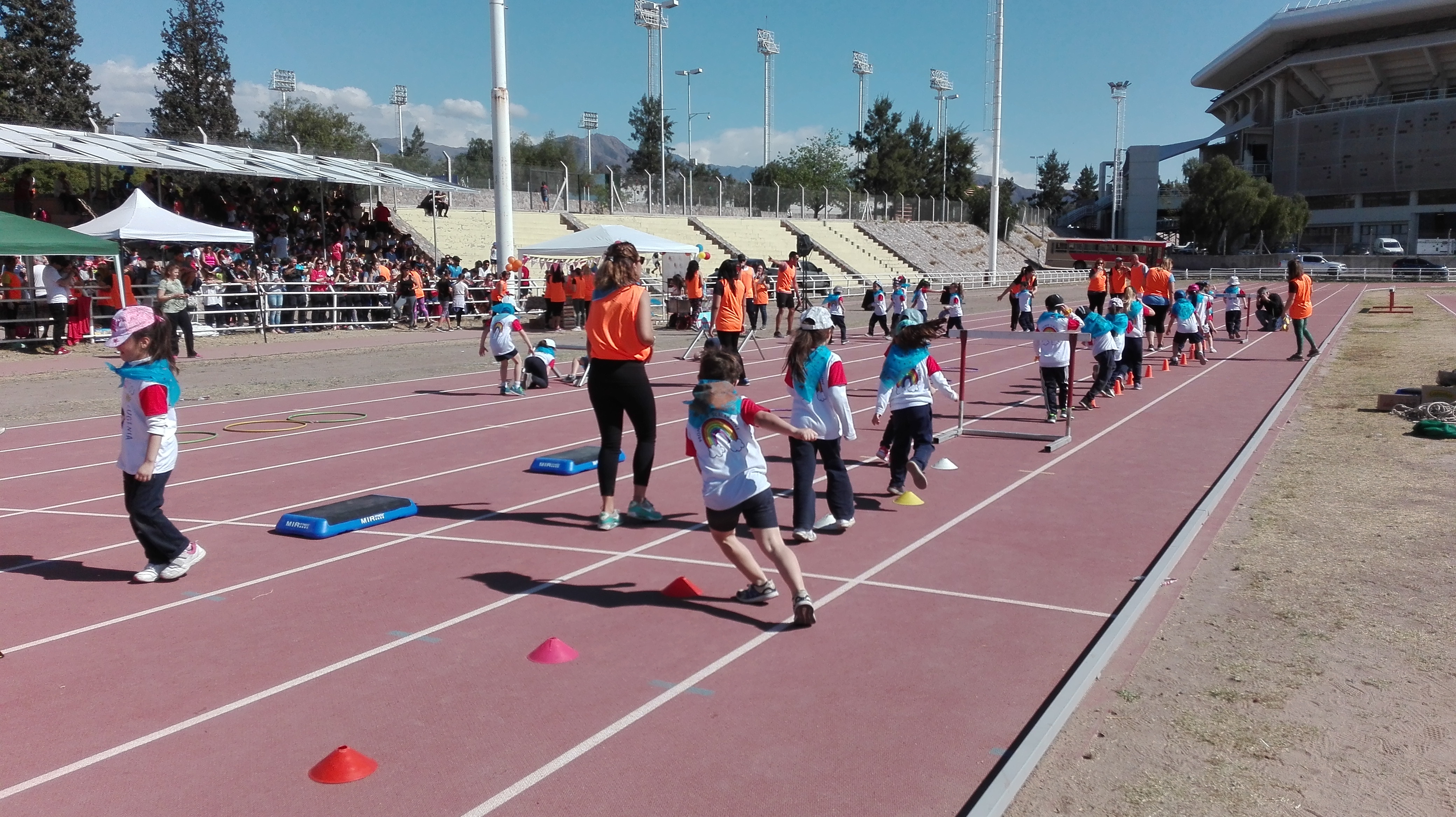 Luego llegó el momento de acción, los niños de Nivel Inicial realizaron un circuito, acompañados por los profesores de Educación Física, mientras que los alumnos de Nivel Primario se encontraban desarrollando diversas disciplinas deportivas (salto en largo, lanzamiento y salto con vallas).