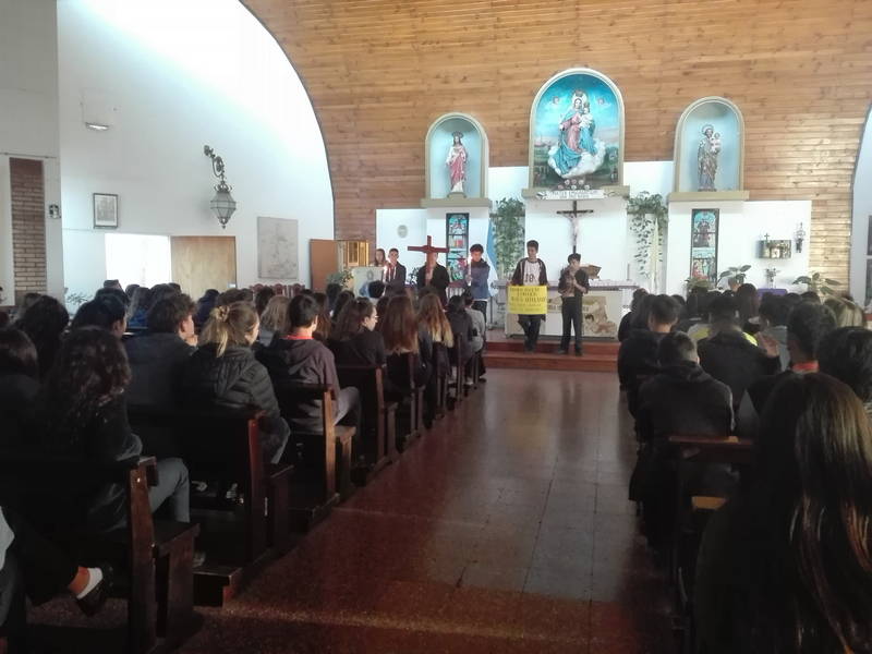 Los alumnos de Nivel Primario presenciaron un Vía Crucis viviente dentro de la institución. En el acto se narró la Pasión de Cristo que se inició con el juicio de Pilatos ante el pueblo hebreo y finalizó con la muerte de Cristo. Posteriormente se realizó un corto pero emotivo encuentro en la iglesia a cargo del Padre Francisco.