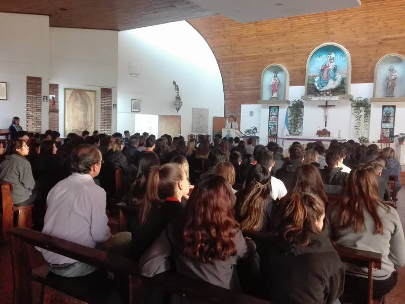 Los alumnos de Nivel Primario presenciaron un Vía Crucis viviente dentro de la institución. En el acto se narró la Pasión de Cristo que se inició con el juicio de Pilatos ante el pueblo hebreo y finalizó con la muerte de Cristo. Posteriormente se realizó un corto pero emotivo encuentro en la iglesia a cargo del Padre Francisco.