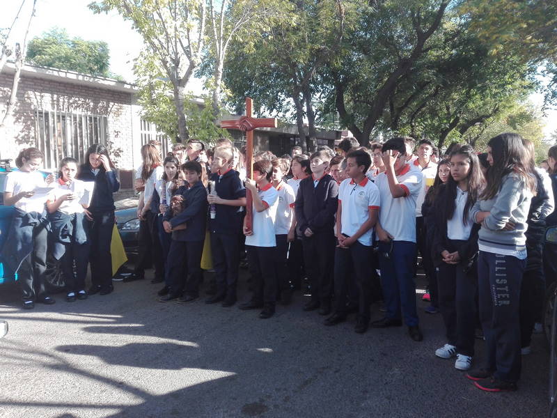 Por su parte, los estudiantes de Nivel Secundario participaron de un Vía Crucis guiado que se realizó por las calles aledañas al colegio. Allí los jóvenes escuchaban atentamente el camino que hizo Jesús hasta el monte Calvario, posteriormente oraban y escuchaban una canción que hacía referencia a los hechos sucedidos en cada estación.