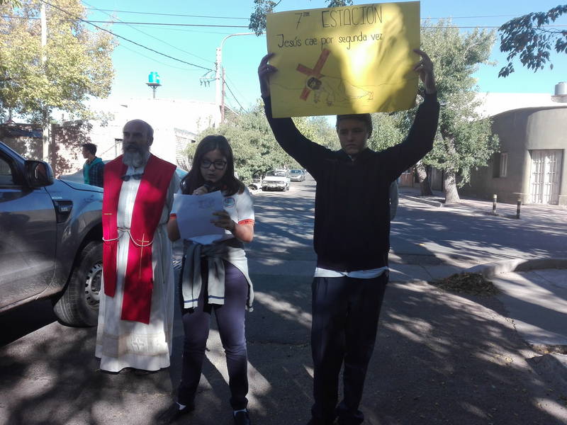 Por su parte, los estudiantes de Nivel Secundario participaron de un Vía Crucis guiado que se realizó por las calles aledañas al colegio. Allí los jóvenes escuchaban atentamente el camino que hizo Jesús hasta el monte Calvario, posteriormente oraban y escuchaban una canción que hacía referencia a los hechos sucedidos en cada estación.
