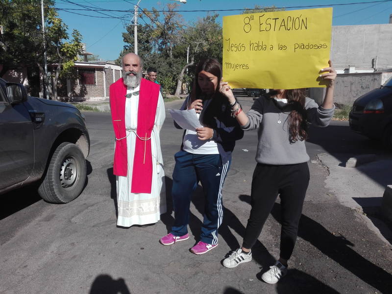 Por su parte, los estudiantes de Nivel Secundario participaron de un Vía Crucis guiado que se realizó por las calles aledañas al colegio. Allí los jóvenes escuchaban atentamente el camino que hizo Jesús hasta el monte Calvario, posteriormente oraban y escuchaban una canción que hacía referencia a los hechos sucedidos en cada estación.