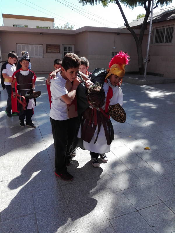 Los alumnos de Nivel Primario presenciaron un Vía Crucis viviente dentro de la institución. En el acto se narró la Pasión de Cristo que se inició con el juicio de Pilatos ante el pueblo hebreo y finalizó con la muerte de Cristo. Posteriormente se realizó un corto pero emotivo encuentro en la iglesia a cargo del Padre Francisco.