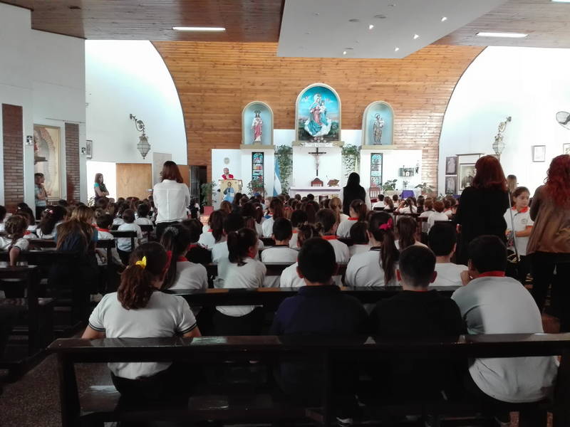 Los alumnos de Nivel Primario presenciaron un Vía Crucis viviente dentro de la institución. En el acto se narró la Pasión de Cristo que se inició con el juicio de Pilatos ante el pueblo hebreo y finalizó con la muerte de Cristo. Posteriormente se realizó un corto pero emotivo encuentro en la iglesia a cargo del Padre Francisco.