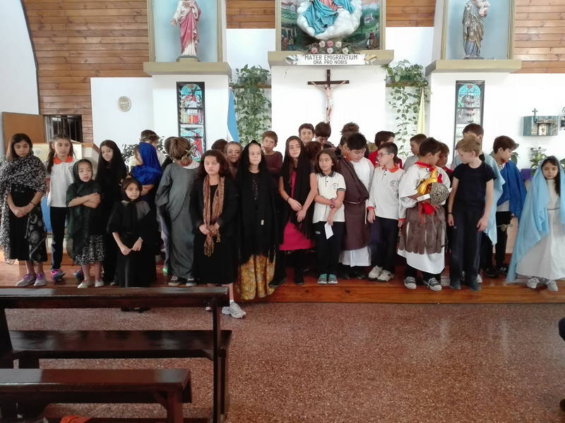 Los alumnos de Nivel Primario presenciaron un Vía Crucis viviente dentro de la institución. En el acto se narró la Pasión de Cristo que se inició con el juicio de Pilatos ante el pueblo hebreo y finalizó con la muerte de Cristo. Posteriormente se realizó un corto pero emotivo encuentro en la iglesia a cargo del Padre Francisco.