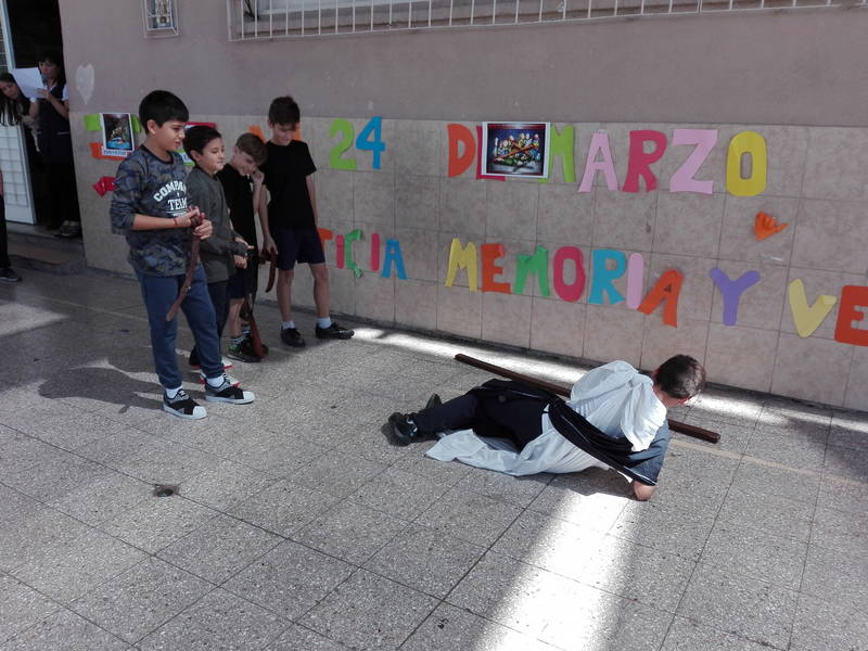 Los alumnos de Nivel Primario presenciaron un Vía Crucis viviente dentro de la institución. En el acto se narró la Pasión de Cristo que se inició con el juicio de Pilatos ante el pueblo hebreo y finalizó con la muerte de Cristo. Posteriormente se realizó un corto pero emotivo encuentro en la iglesia a cargo del Padre Francisco.
