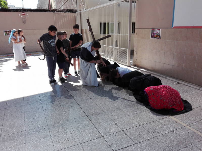 Los alumnos de Nivel Primario presenciaron un Vía Crucis viviente dentro de la institución. En el acto se narró la Pasión de Cristo que se inició con el juicio de Pilatos ante el pueblo hebreo y finalizó con la muerte de Cristo. Posteriormente se realizó un corto pero emotivo encuentro en la iglesia a cargo del Padre Francisco.